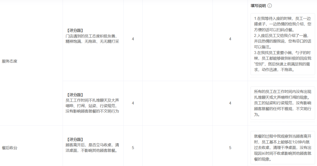 神秘顾客帮助调整出品摆盘就是非常好的突破。之前对摆盘关注很少,而嗨探让门店知道,摆盘也是一个扣分点,之后才开始注重摆盘。另外,有些门店上菜时服务术语说的不到位,通过神秘顾客的“矫正”,现在也已恢复到正常说服务语的环节了。
