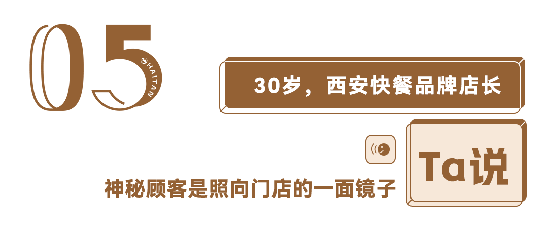 我觉得用镜子来形容神秘顾客很合适,这是对大家内心的一种检测,可以检测到大家是否真的热爱这份工作,而且也确实折射出了很多问题。