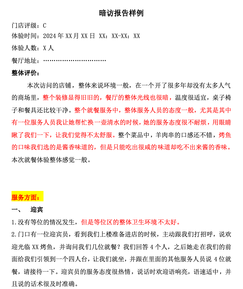 (1)神秘顾客的调研结果更真实